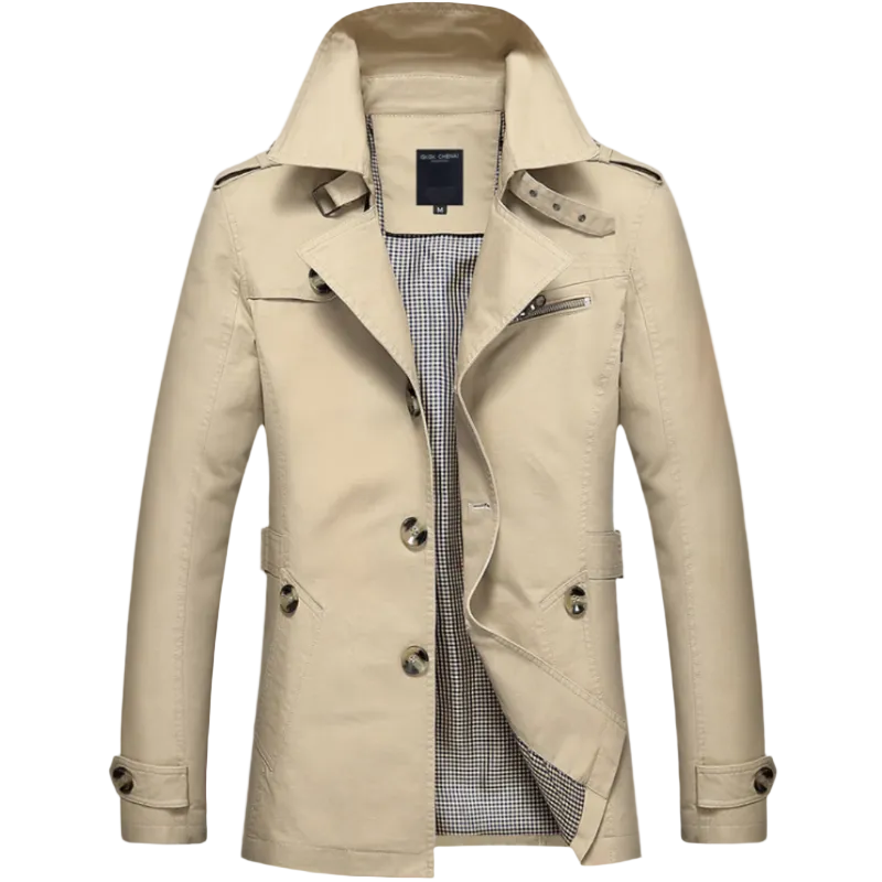 Męski płaszcz typu trencz z paskami przy mankietach