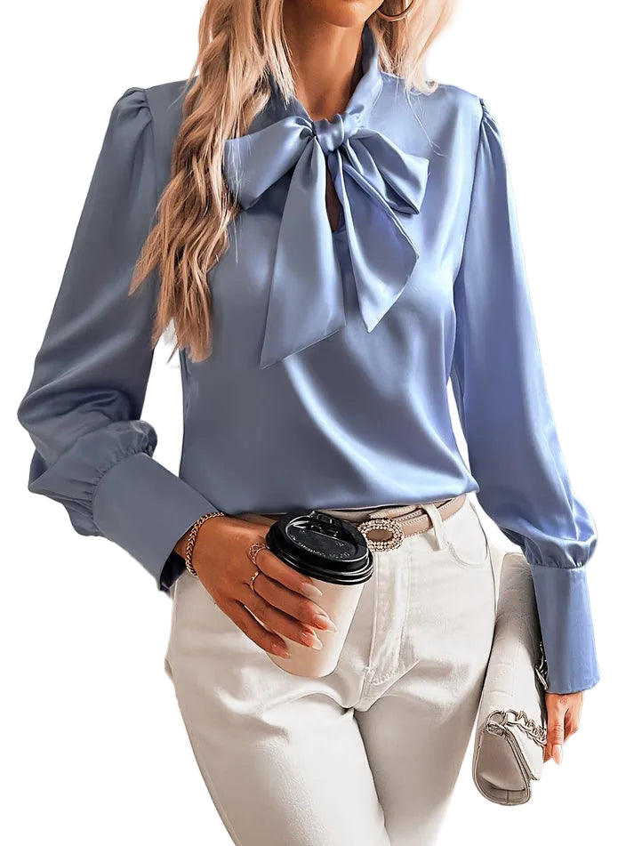 Damska bluzka z długim rękawem i wiązaniem przy dekolcie