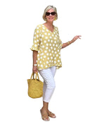 Damska bluzka z krótkim rękawem w groszki