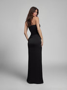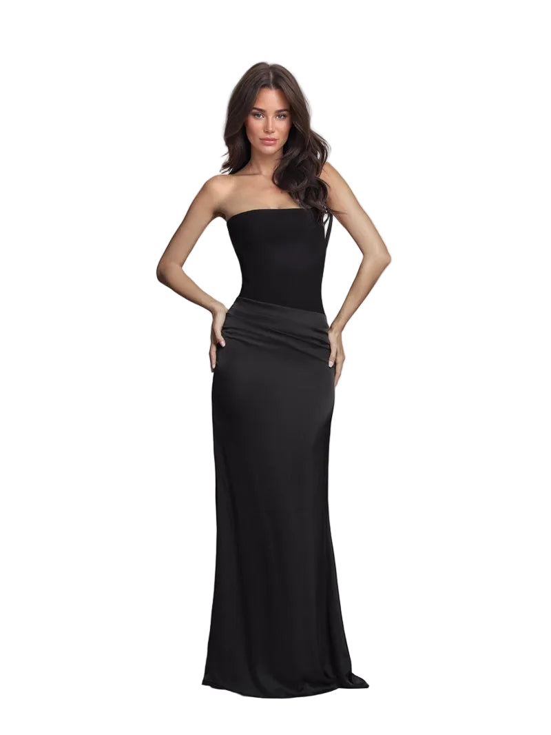 Damska długa sukienka bez ramiączek o dopasowanym kroju