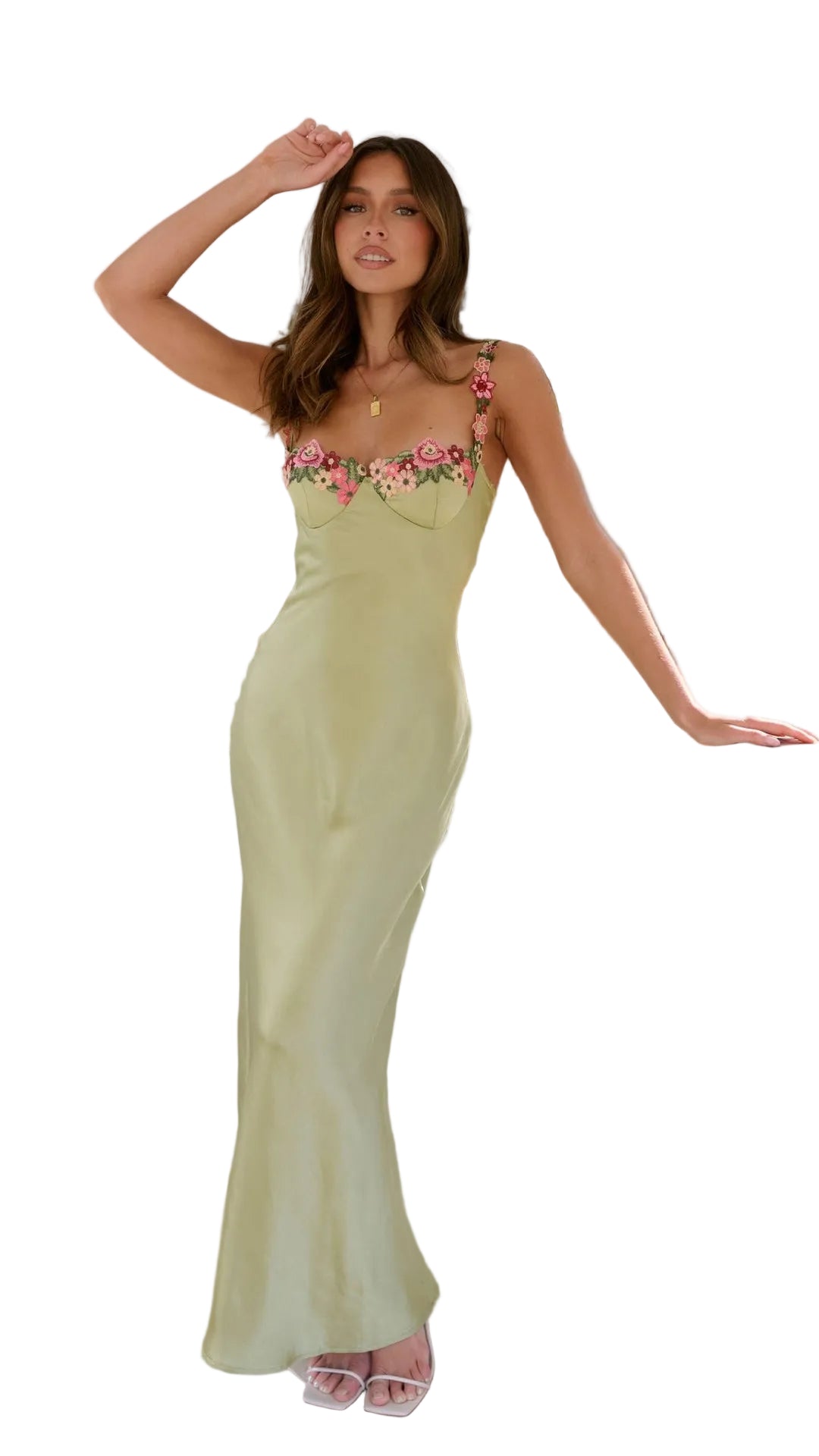 Damska długa sukienka na ramiączkach z ozdobnymi detalami