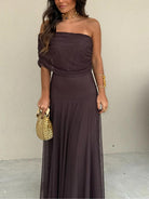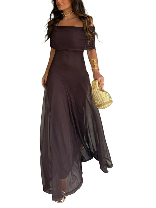 Damska długa sukienka z odkrytymi ramionami i półprzezroczystą warstwą