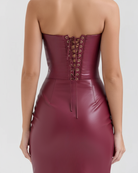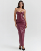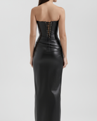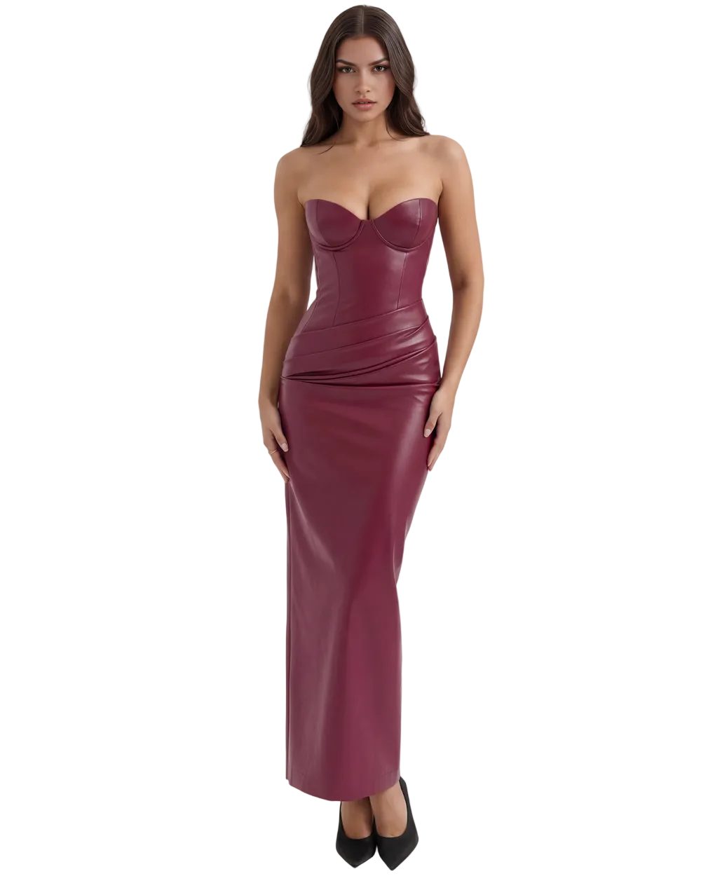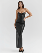 Damska dopasowana sukienka maxi bez ramiączek z modelującymi przeszyciami