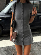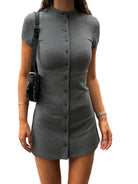 Damska dopasowana sukienka mini z krótkim rękawem i guzikami z przodu