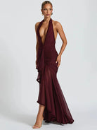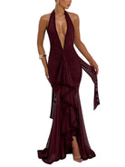 Damska sukienka maxi z dekoltem halter i marszczonym wykończeniem