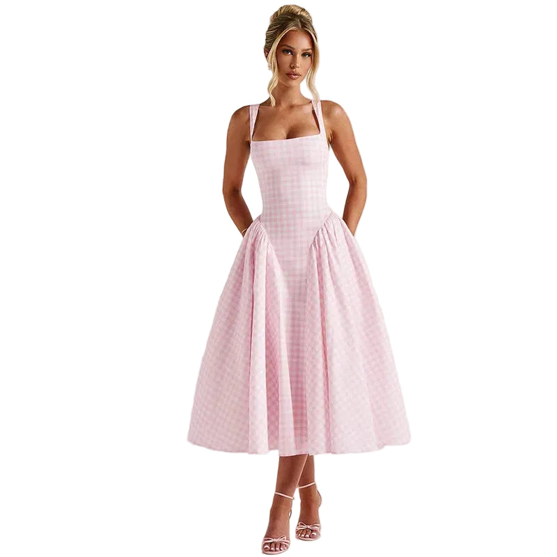 Damska sukienka midi na ramiączkach w kratkę