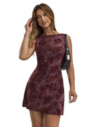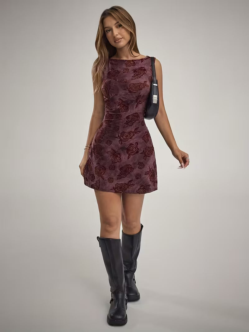 Damska sukienka mini bez rękawów z nadrukiem róż