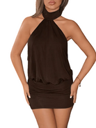 Damska sukienka mini halter z odkrytymi ramionami