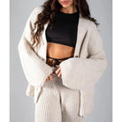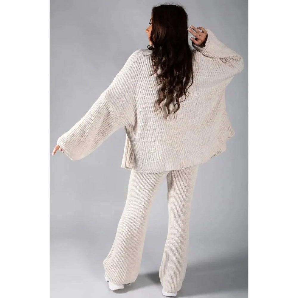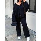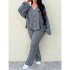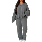 Damski dzianinowy zestaw z kardiganem zapinanym na guziki i spodniami