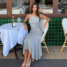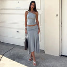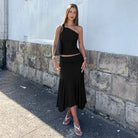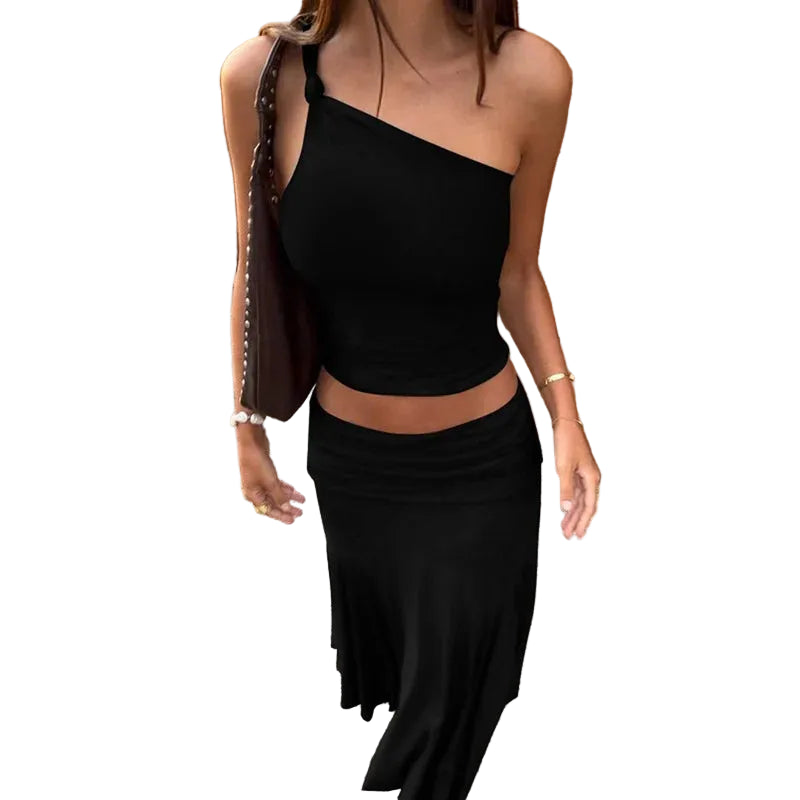Damski zestaw dwuczęściowy na jedno ramię z topem i spódnicą midi
