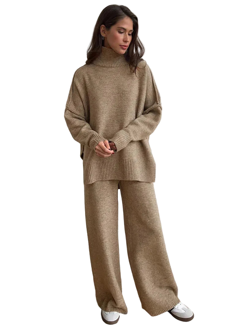 Damski zestaw dzianinowy z golfem i prostymi nogawkami