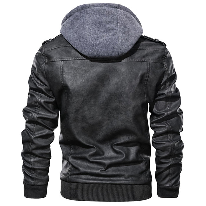 Męska kurtka ze skóry syntetycznej z kapturem i zamkiem